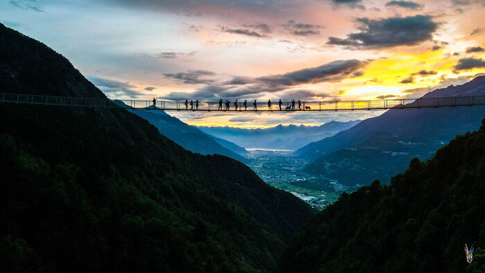 Partecipa ala nostra escursione esclusiva in Val Tartano e attraversa l'iconico Ponte nel Cielo al tramonto. Immergiti nella storia e nella cultura locale, e concludi l'esperienza con un delizioso aperitivo a base di specialità valtellinesi: fonduta, polenta, salumi, tarantina e vini pregiati. Un'emozione unica tra cielo e terra.